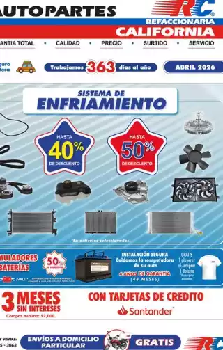 descubre las ofertas y lo que no trae refaccionaria california México 2026 abril 2026 donde veremos auto partes , refacciones de autos en México de la mas alta calidad , donde podrás encontrar el personal calificado siempre encontrarás una sucursal cerca a ti , podemos encontrar dentro del catalogo online ofertas y promociones . sucursales en puebla , cuernavaca , toluca , queretaro , celaya ,texcoco ,leon,tizayuca,ixtapaluca, portales :